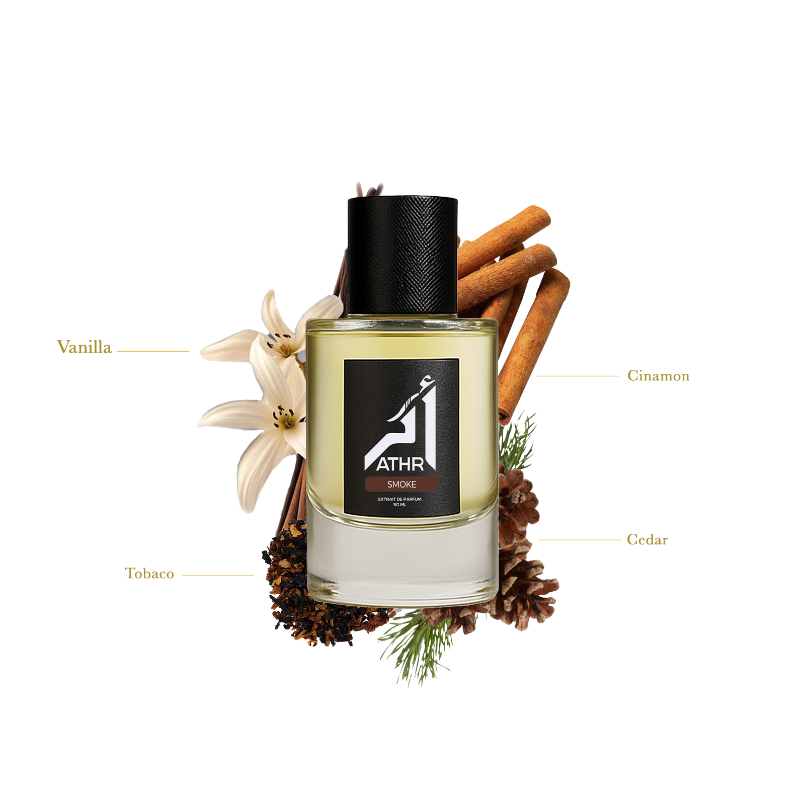 warm, spicy, and luxurious tobacco fragrance. It opens with cinnamon and pepper, deepens into smoky tobacco and resinous notes, and settles on a creamy, sweet, woody base of vanilla, cedar, and vetiver—elegant, masculine, and long-lasting